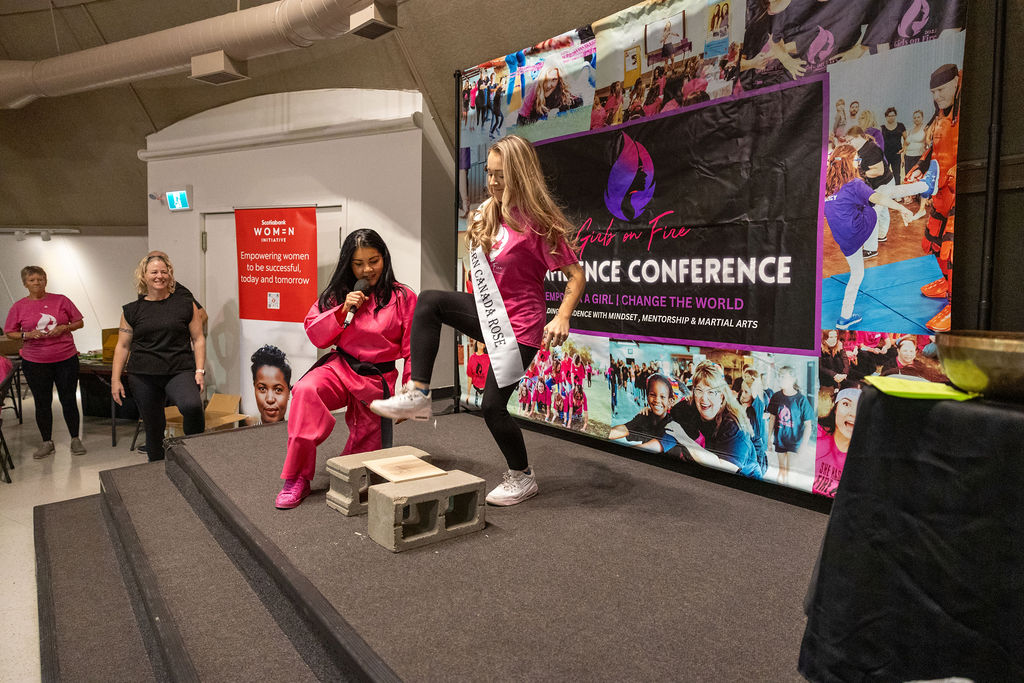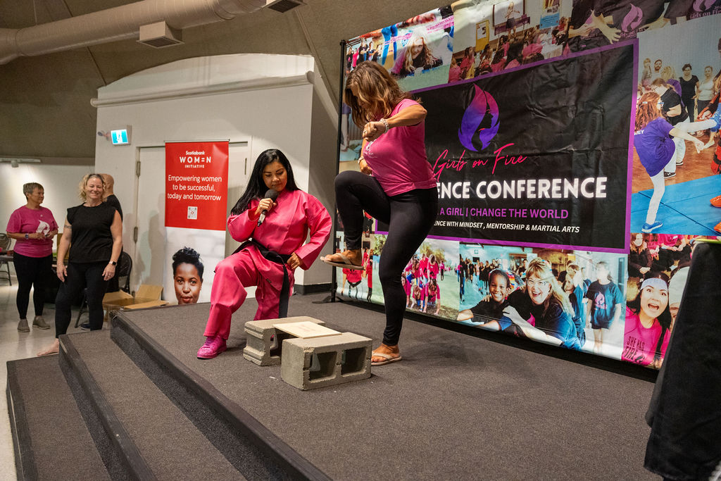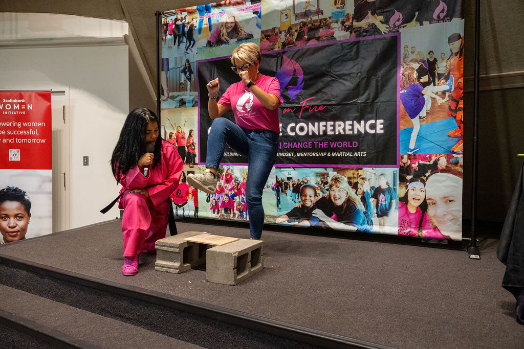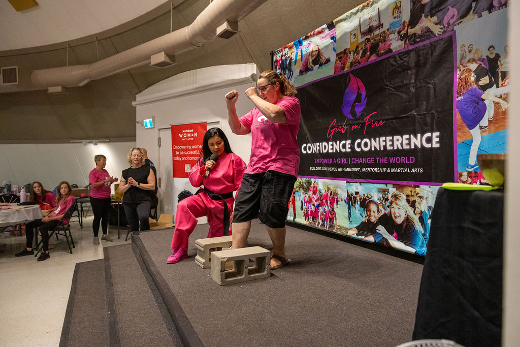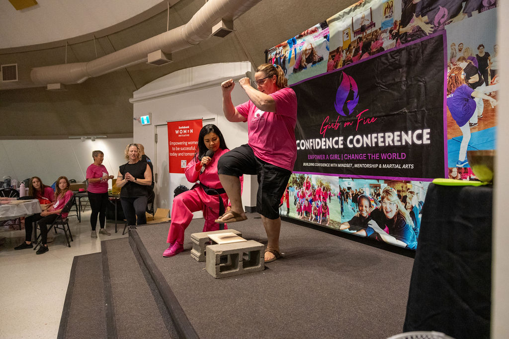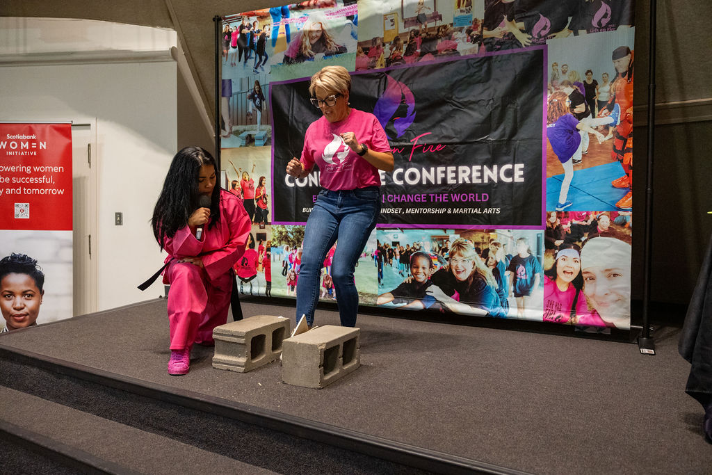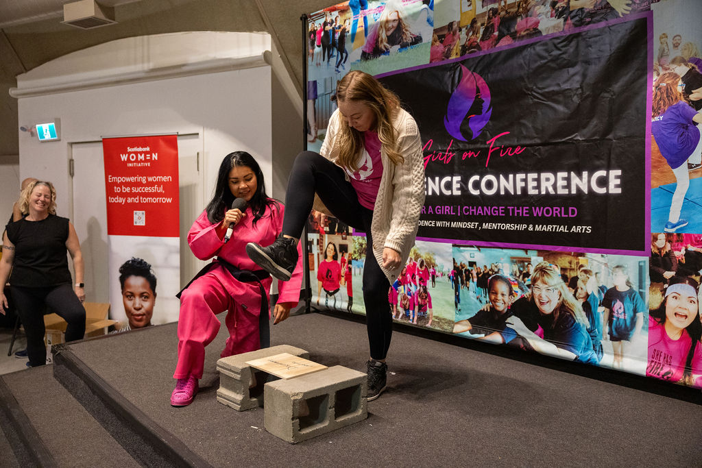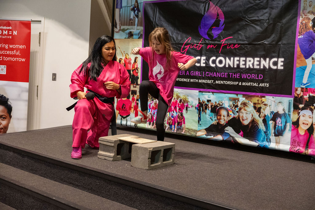 Theresa is a 6th Degree Black Belt, a full contact Muay Thai Fighter and a 13 time international Taekwon-do athlete. Finding much of her confidence in training martial arts, she uses her platform as a female leader and coach to teach girls self defence and self confidence. Her innovative Girls On Fire Confidence Conference and Mentorship Programs have spread like wild fire and have impacted hundreds of girls in Alberta. Her mission is to reach a million girls between the ages of 8-13 with her message of building confidence and learning combat training. This program started in 2018 with 25 girls in Edmonton. In 2025, the Girls on Fire Confidence Conference has hosted six conferences in Edmonton, three conferences in Red Deer and now for the first time, in Calgary in September 2025, impacting thousands of girls!