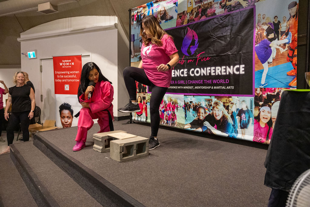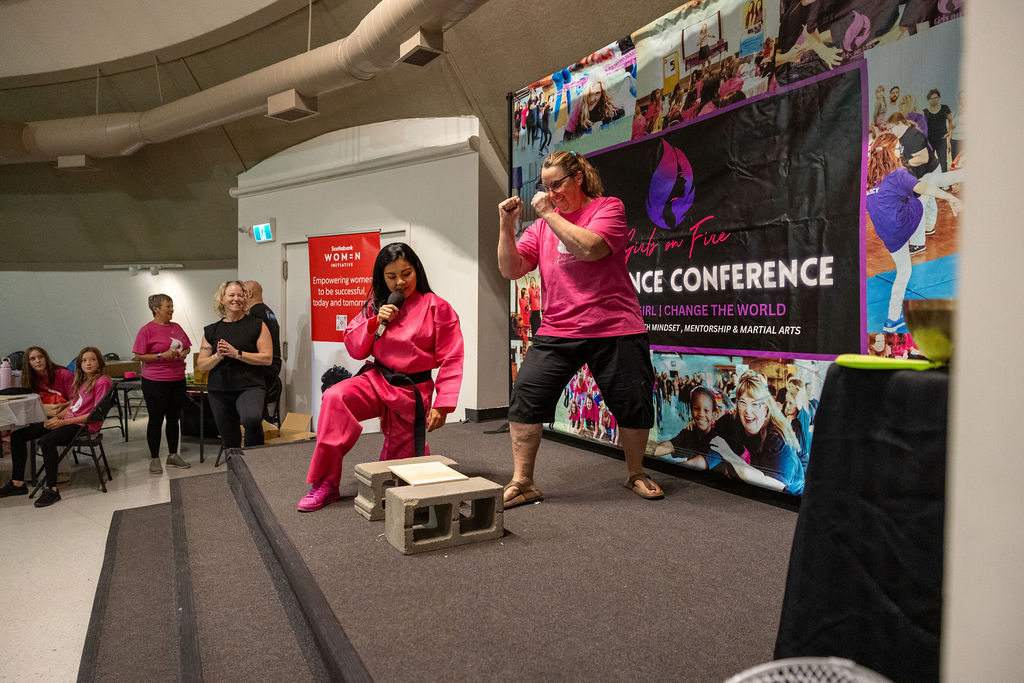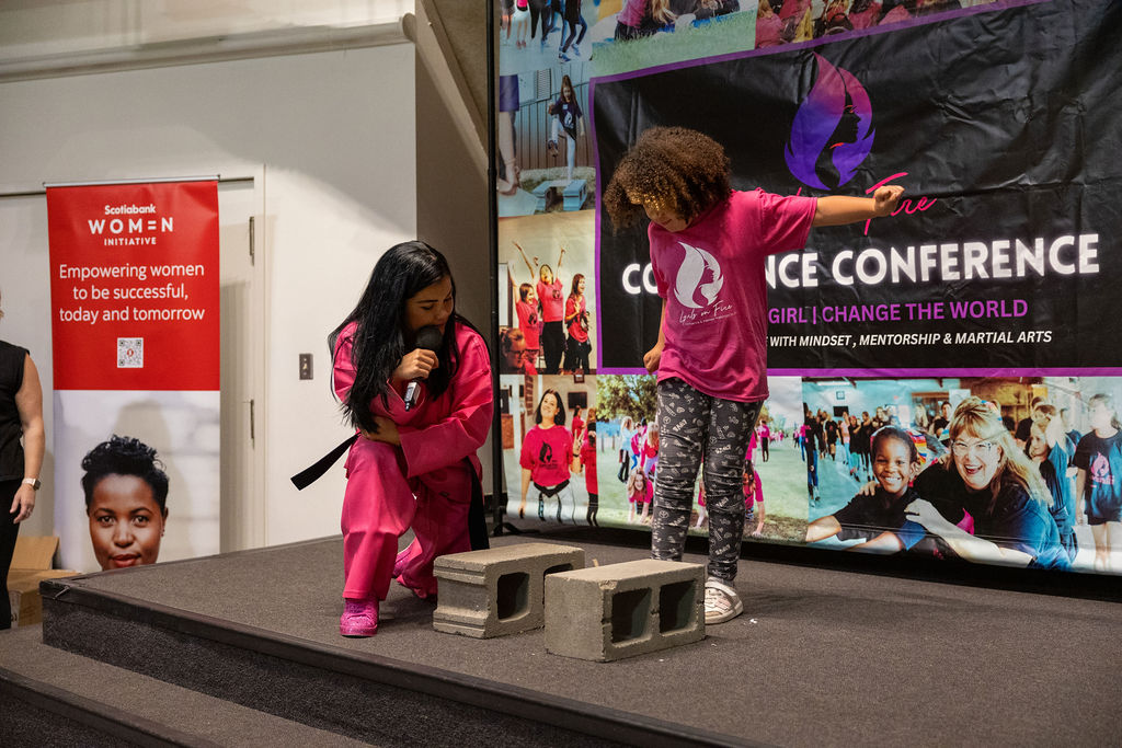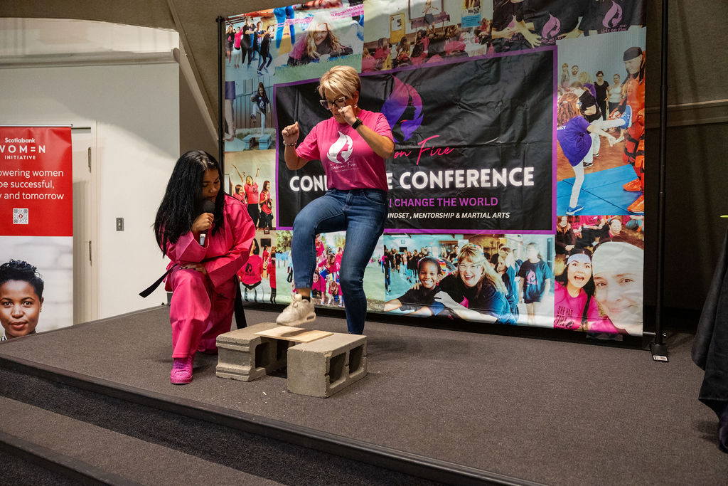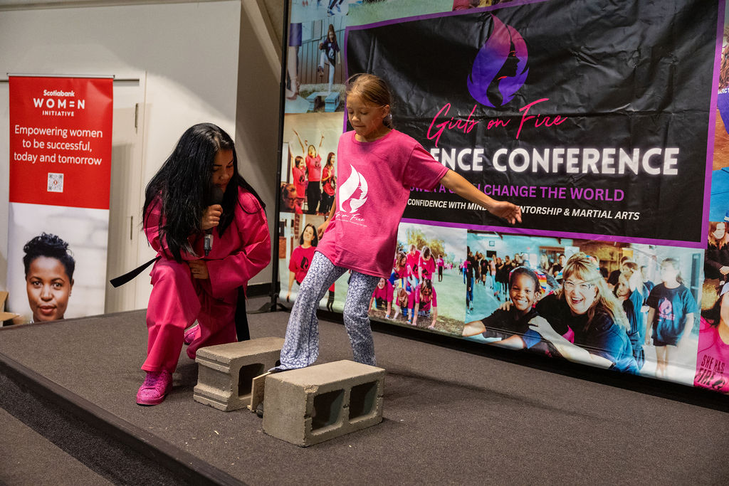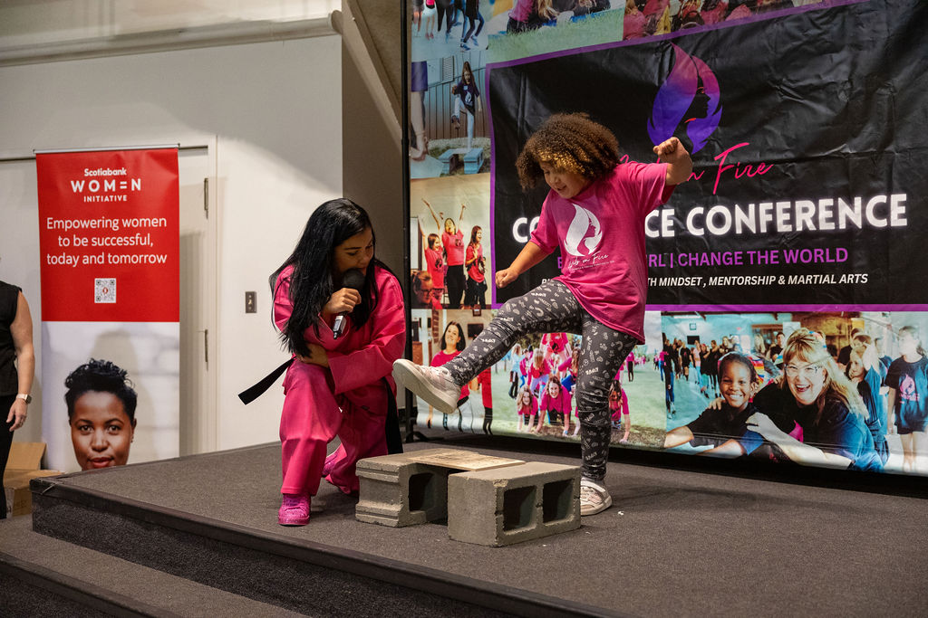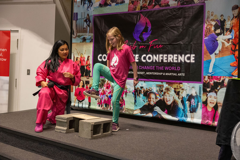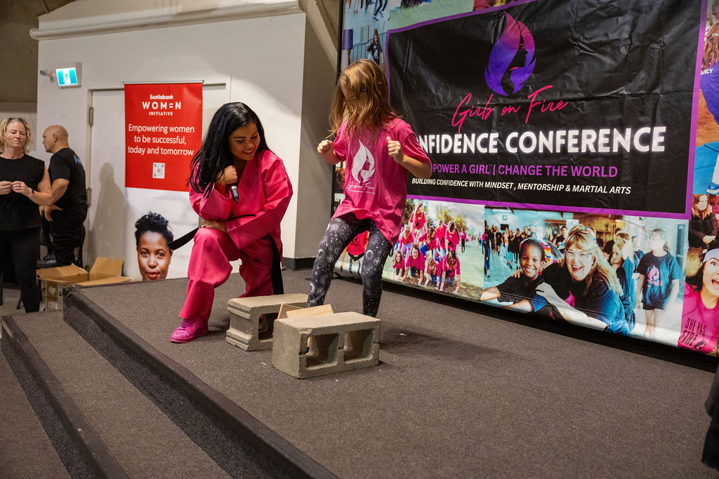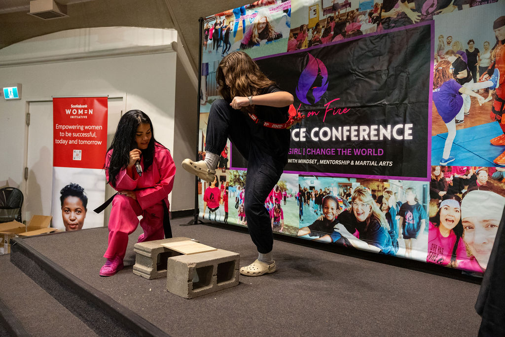 Theresa is a 6th Degree Black Belt, a full contact Muay Thai Fighter and a 13 time international Taekwon-do athlete. Finding much of her confidence in training martial arts, she uses her platform as a female leader and coach to teach girls self defence and self confidence. Her innovative Girls On Fire Confidence Conference and Mentorship Programs have spread like wild fire and have impacted hundreds of girls in Alberta. Her mission is to reach a million girls between the ages of 8-13 with her message of building confidence and learning combat training. This program started in 2018 with 25 girls in Edmonton. In 2025, the Girls on Fire Confidence Conference has hosted six conferences in Edmonton, three conferences in Red Deer and now for the first time, in Calgary in September 2025, impacting thousands of girls!