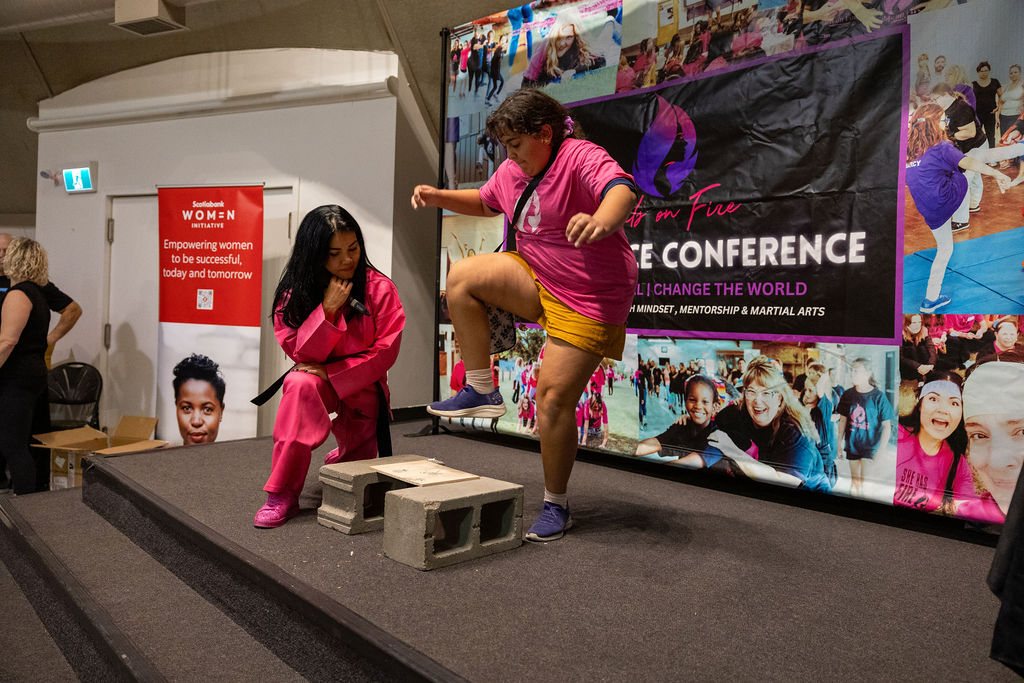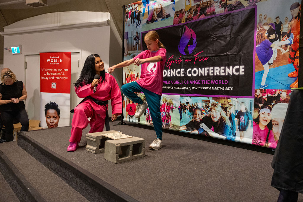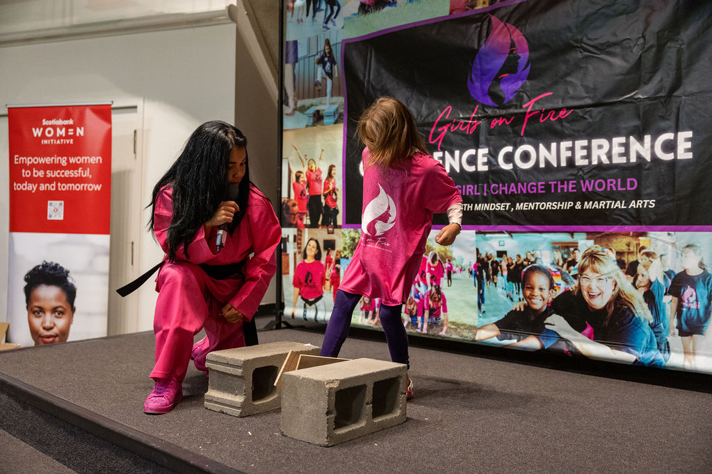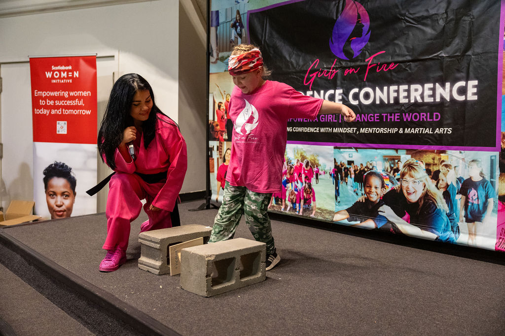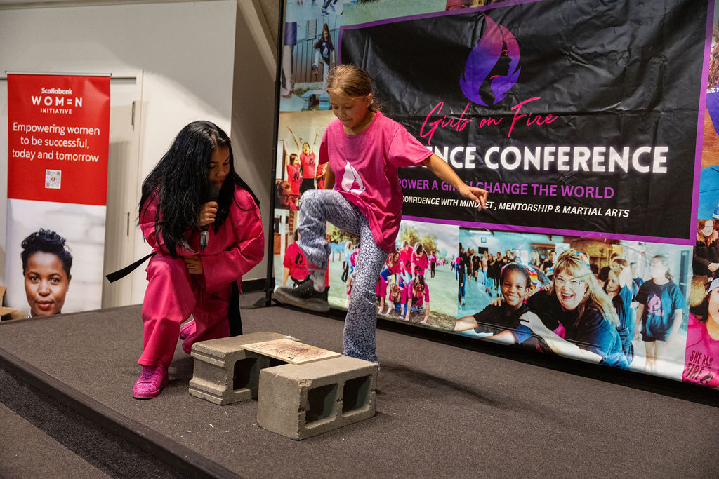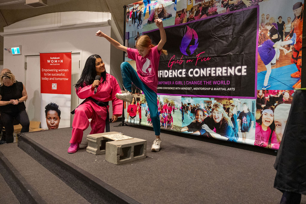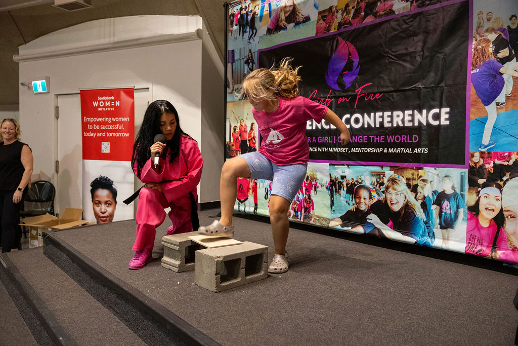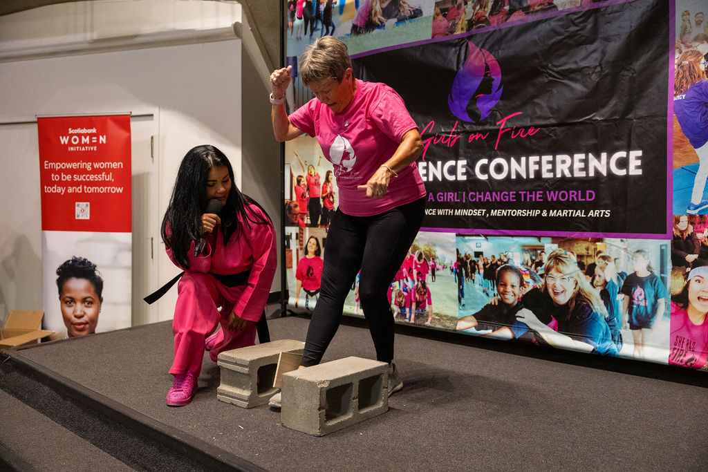 Theresa is a 6th Degree Black Belt, a full contact Muay Thai Fighter and a 13 time international Taekwon-do athlete. Finding much of her confidence in training martial arts, she uses her platform as a female leader and coach to teach girls self defence and self confidence. Her innovative Girls On Fire Confidence Conference and Mentorship Programs have spread like wild fire and have impacted hundreds of girls in Alberta. Her mission is to reach a million girls between the ages of 8-13 with her message of building confidence and learning combat training. This program started in 2018 with 25 girls in Edmonton. In 2025, the Girls on Fire Confidence Conference has hosted six conferences in Edmonton, three conferences in Red Deer and now for the first time, in Calgary in September 2025, impacting thousands of girls!