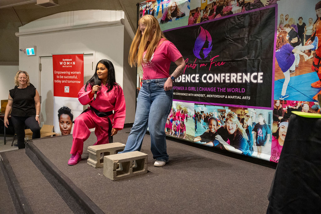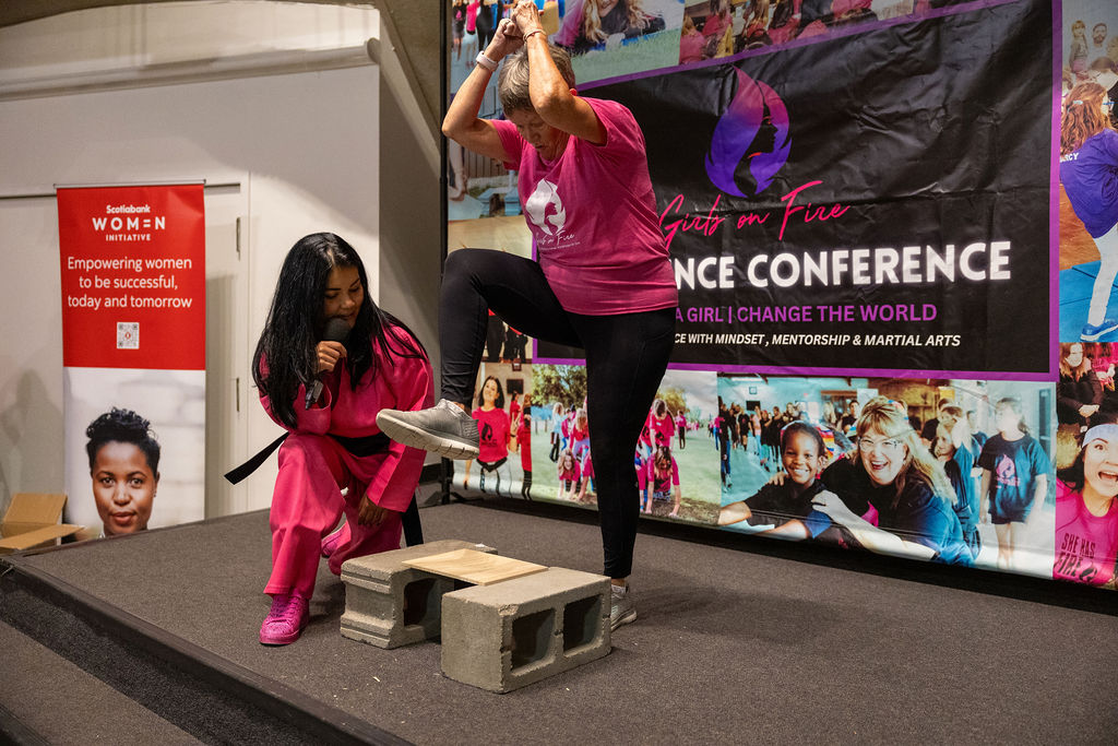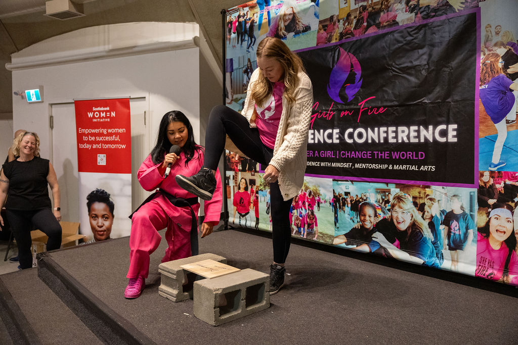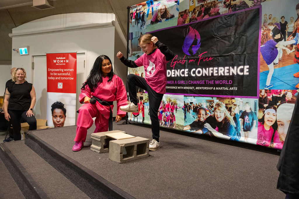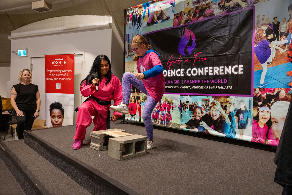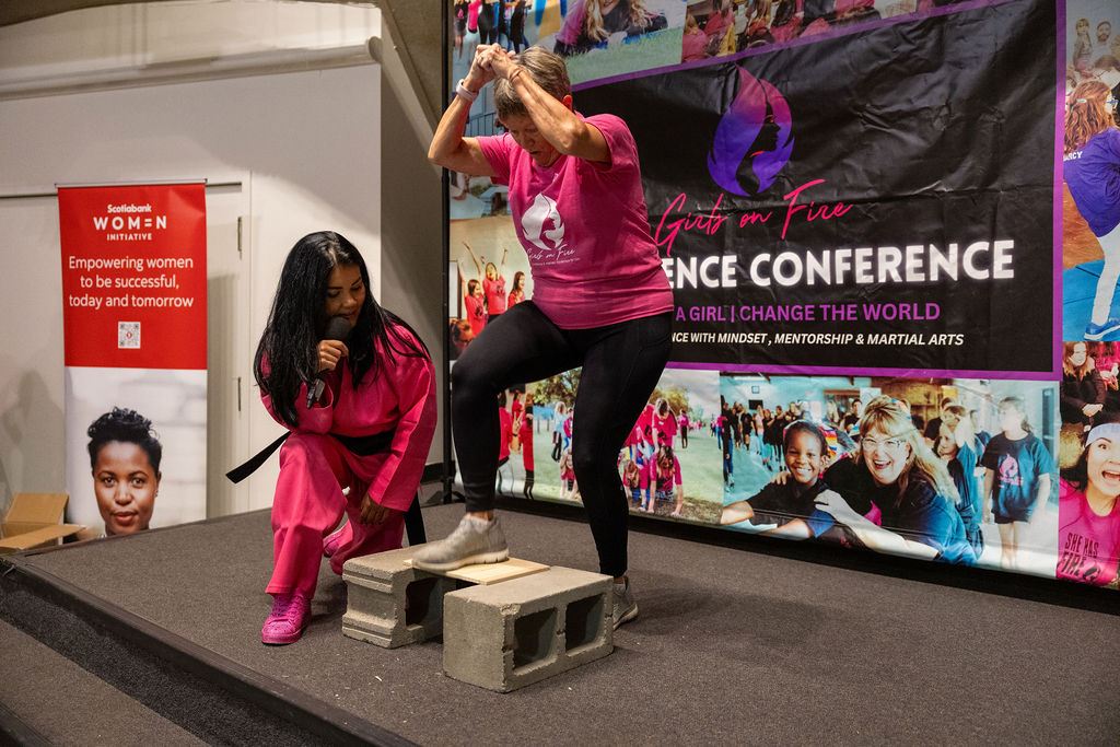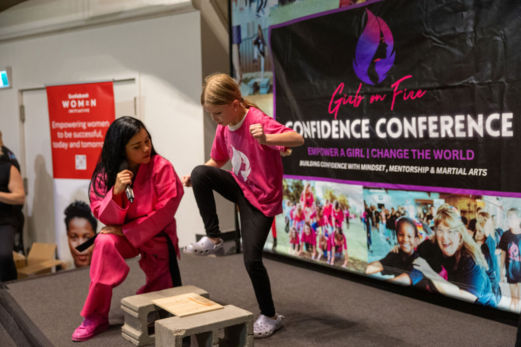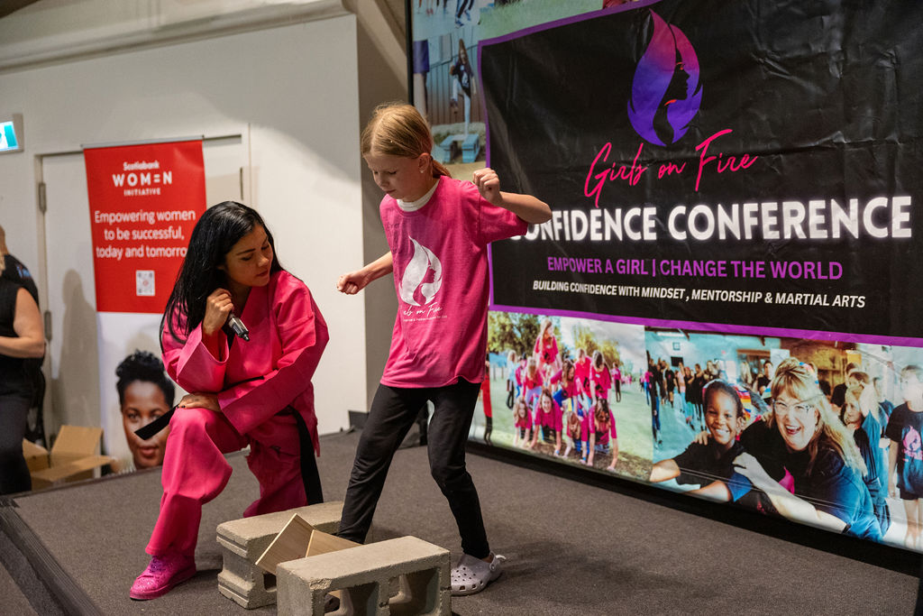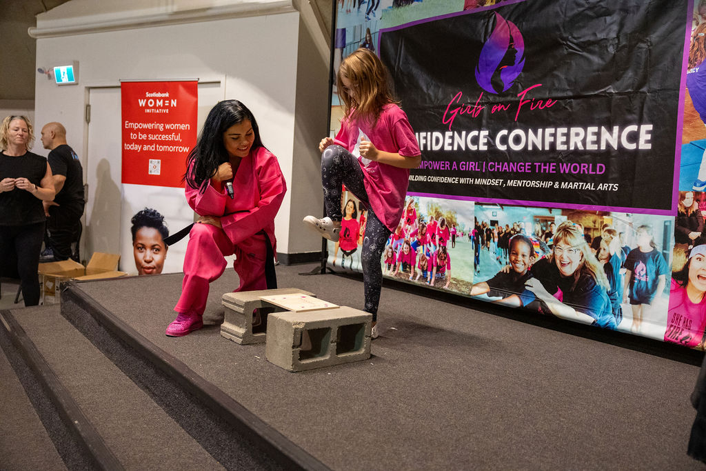 Theresa is a 6th Degree Black Belt, a full contact Muay Thai Fighter and a 13 time international Taekwon-do athlete. Finding much of her confidence in training martial arts, she uses her platform as a female leader and coach to teach girls self defence and self confidence. Her innovative Girls On Fire Confidence Conference and Mentorship Programs have spread like wild fire and have impacted hundreds of girls in Alberta. Her mission is to reach a million girls between the ages of 8-13 with her message of building confidence and learning combat training. This program started in 2018 with 25 girls in Edmonton. In 2025, the Girls on Fire Confidence Conference has hosted six conferences in Edmonton, three conferences in Red Deer and now for the first time, in Calgary in September 2025, impacting thousands of girls!